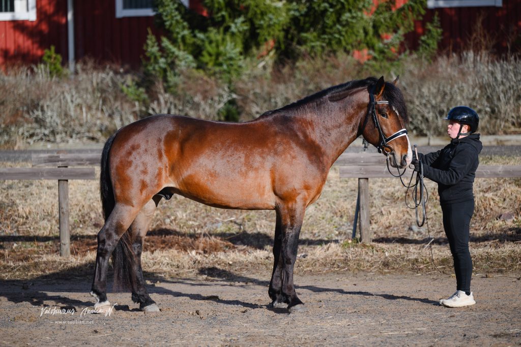 Ori toimii erittäin hyvin kärryjen ja reen edessä. Myös sisäänratsutus on ollut erittäin helppoa. Tässä oriissa yhdistyy kaikki hyvän suomenhevosen piirteet.